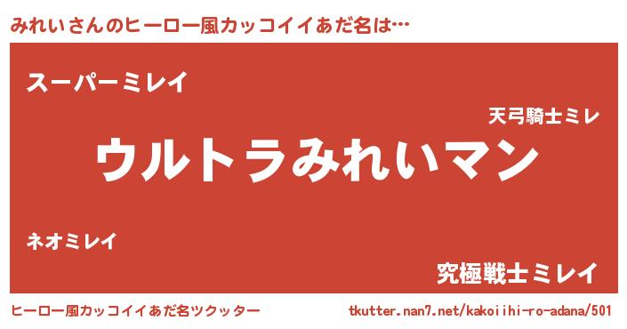 | 女子向けラノベタイトル風あだ名 | 『みれいの玉の輿計画!』 |