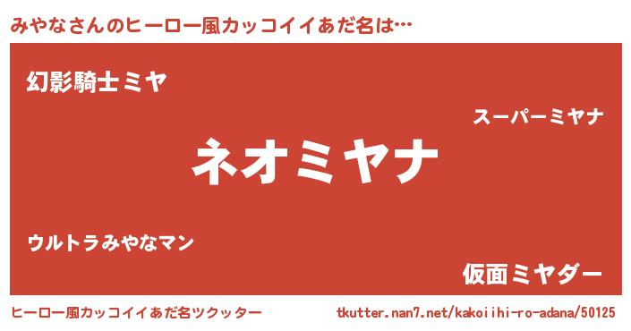 | 男性向けラノベタイトル風あだ名 | 『緋弾のミヤナ』『魔弾の王とみやな』 |