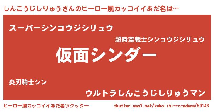 | 意味不明あだ名 | 『住所不定無職しんこうじしりゅう(14歳)』 |