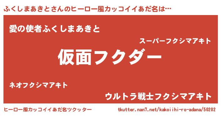 | 意味不明あだ名 | 『住所不定無職ふくしまあきと(74歳)』 |