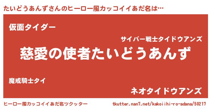 | ヘコむあだ名 | 『たいどうあんず(遠い目)』『たいっぺ』 |