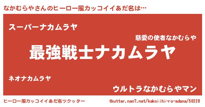 | 男性向けラノベタイトル風あだ名 | 『Re:なかむらやから始める異世界生活』 |