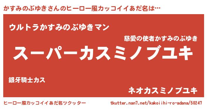| 女子向けラノベタイトル風あだ名 | 『かすみのぶゆきの玉の輿計画!』 |