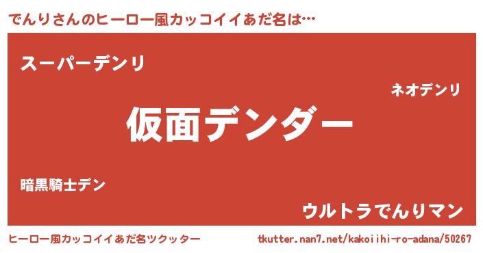 | 男性向けラノベタイトル風あだ名 | 『魔弾の王とでんり』 |