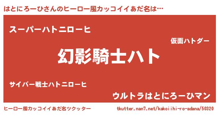 | ファンタジー風あだ名 | 『ファントムハトス』『カークハトラー』 |