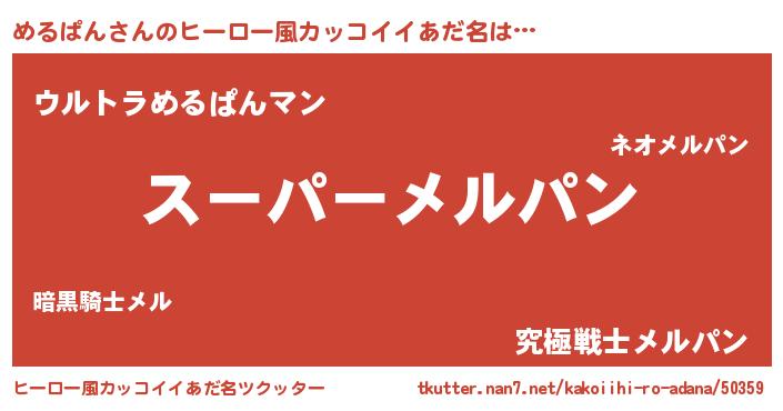 | 女子向けラノベタイトル風あだ名 | 『めるぱんの玉の輿計画!』 |