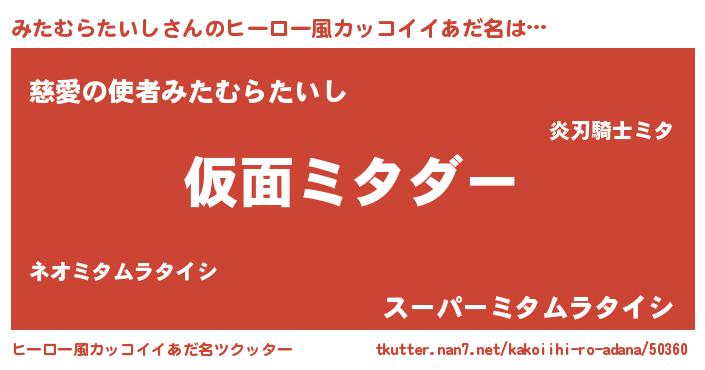 | 意味不明あだ名 | 『住所不定無職みたむらたいし(98歳)』 |