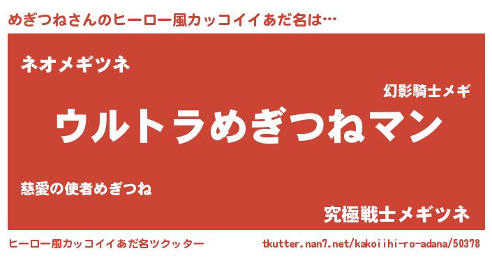 | 意味不明あだ名 | 『めぎつねフォーエバー』『自称めぎつね』 |