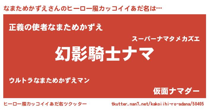 | ポケモン風あだ名 | 『ヒナマタメカズエ』『ナックウザ』 |