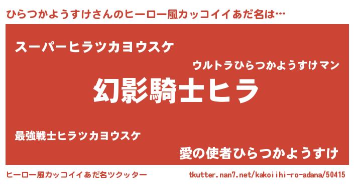 | 男性向けラノベタイトル風あだ名 | 『ひらつかようすけの嫁は女の子じゃないと思った?』 |