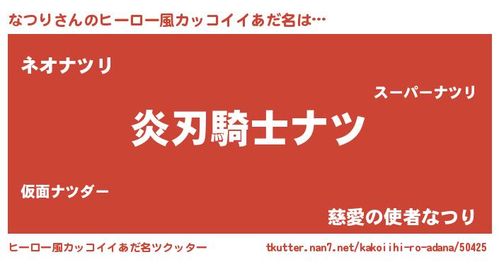 | ポケモン風あだ名 | 『ヒナツリ』『ゼニナツ』『ナツゴンZ』 |