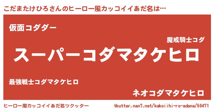 | 胡散臭い通販商品みたいなあだ名 | 『億万長者になれる霊験あらたかなお札…その名も「こだまたけひろ」』 |
