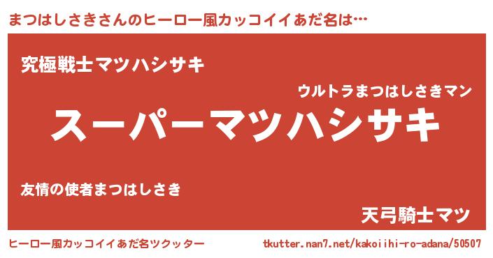 | 男性向けラノベタイトル風あだ名 | 『まつはしさきの憂鬱』 |
