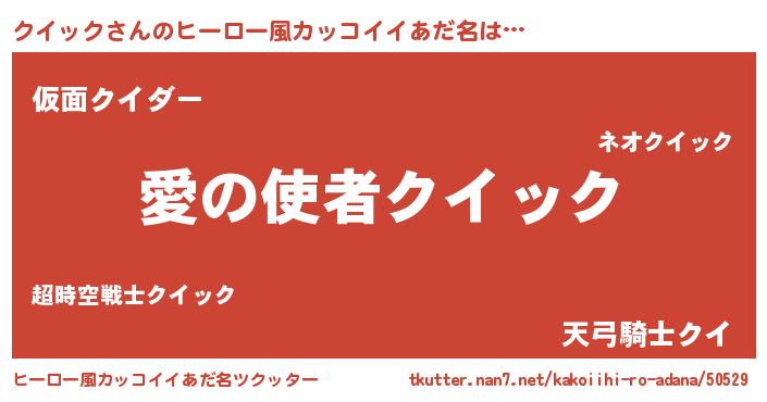 | 女子向けラノベタイトル風あだ名 | 『クイックの玉の輿計画!』 |