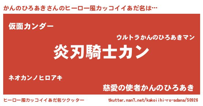 | 男性向けラノベタイトル風あだ名 | 『かんのひろあきに滅ぼされるだけの簡単なお仕事です』 |