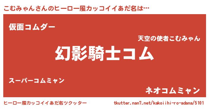 | 男性向けラノベタイトル風あだ名 | 『こむみゃんの嫁は女の子じゃないと思った?』 |