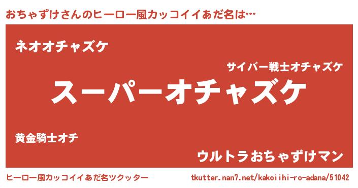 | 胡散臭い通販商品みたいなあだ名 | 『億万長者になれるブレスレット…その名も「おちゃずけ」』 |