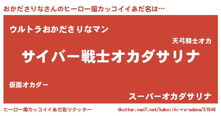| 男性向けラノベタイトル風あだ名 | 『Re:おかださりなから始める異世界生活』 |