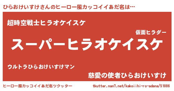 | 男性向けラノベタイトル風あだ名 | 『ひらおけいすけの憂鬱』 |