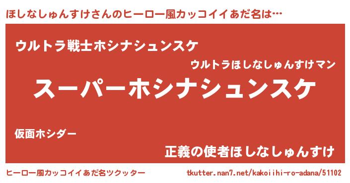 | 恥ずかしいあだ名 | 『プリティーほしなしゅんすけ』 |