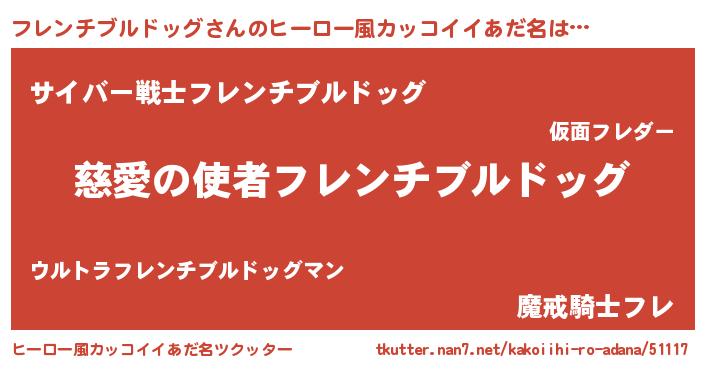 | 男性向けラノベタイトル風あだ名 | 『ノーゲーム・ノーフレンチブルドッグ』 |