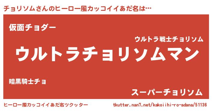 | 男性向けラノベタイトル風あだ名 | 『やはりチョリソムの青春ラブコメはまちがっている 』 |