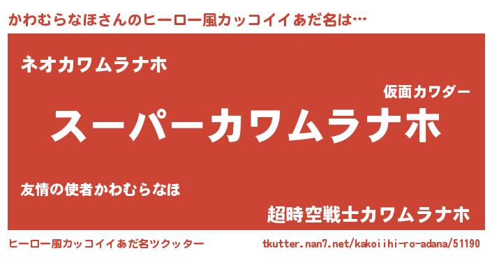 | 男性向けラノベタイトル風あだ名 | 『カワムラナホアートオンライン』 |