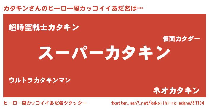 | 男性向けラノベタイトル風あだ名 | 『転生したらカタキンだった件』 |