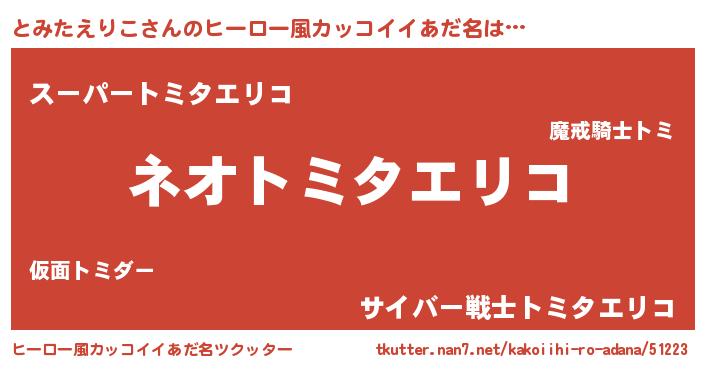 | 男性向けラノベタイトル風あだ名 | 『トミタエリコスレイヤー』 |