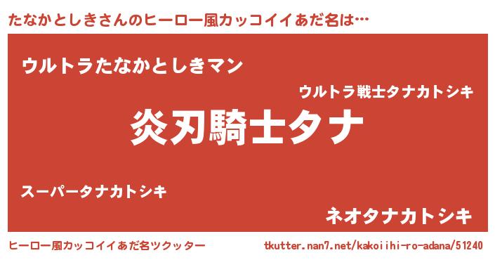 | 男性向けラノベタイトル風あだ名 | 『たなかとしきの嫁は女の子じゃないと思った?』 |