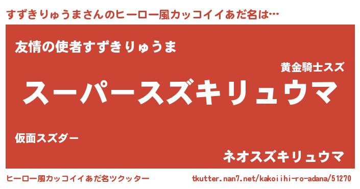 | 胡散臭い通販商品みたいなあだ名 | 『モテモテ間違いなし霊験あらたかなお札…その名も「すずきりゅうま」』 |