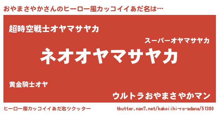 | 欧米人風あだ名 | 『おやまさやか・ステッグマイヤー』 |