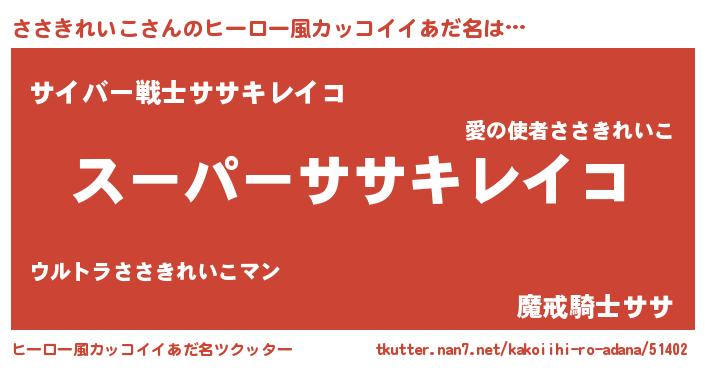 | 女子向けラノベタイトル風あだ名 | 『ささきれいこ姫と円卓の騎士』 |