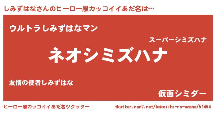| 男性向けラノベタイトル風あだ名 | 『シミズハナスレイヤー』 |