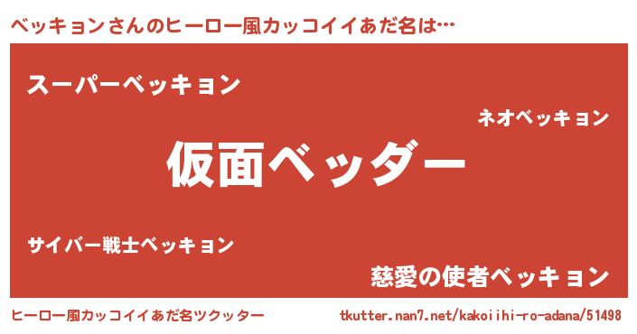 | 男性向けラノベタイトル風あだ名 | 『この素晴らしい世界にベッキョンを!』 |