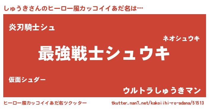 | 男性向けラノベタイトル風あだ名 | 『Re:しゅうきから始める異世界生活』 |
