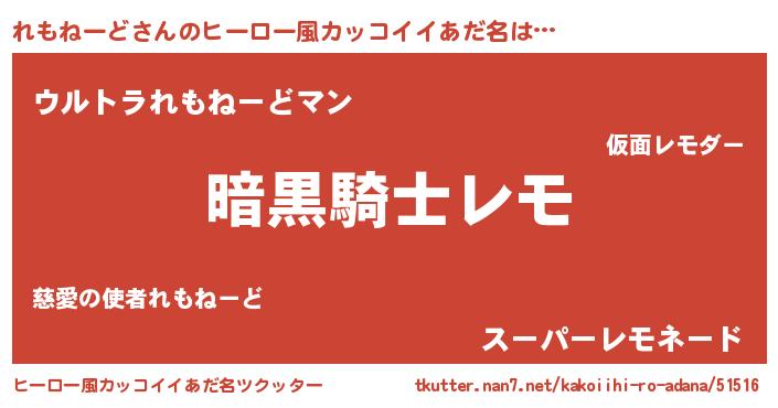 | 料理風あだ名 | 『れもねーどの豆乳スープ』 |