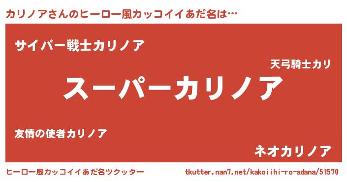 | 男性向けラノベタイトル風あだ名 | 『転生したらカリノアだった件』 |