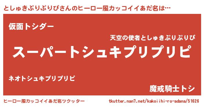 | 男性向けラノベタイトル風あだ名 | 『としゅきぷりぷりぴの憂鬱』 |