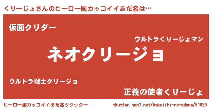 | 男性向けラノベタイトル風あだ名 | 『くりーじょ~年齢イコール彼女いない歴の魔法使い~』 |