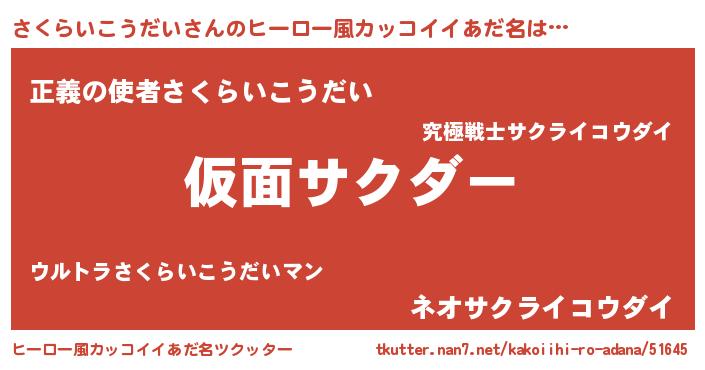 | 男性向けラノベタイトル風あだ名 | 『この素晴らしい世界にさくらいこうだいを!』 |