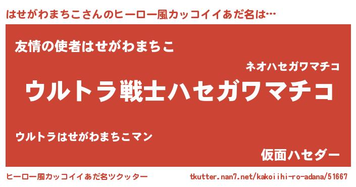 | 意味不明あだ名 | 『自称はせがわまちこ』 |