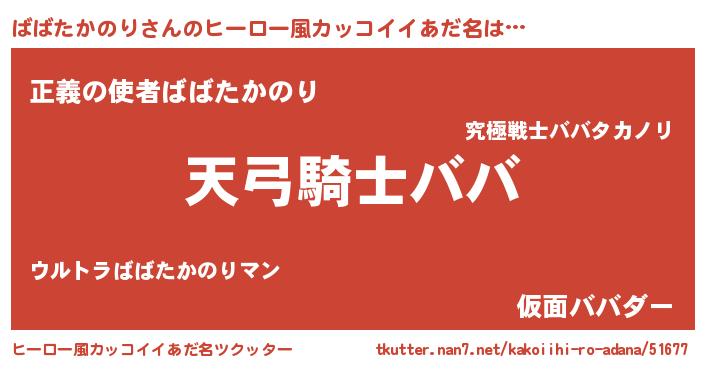 | 男性向けラノベタイトル風あだ名 | 『ばばたかのりの嫁は女の子じゃないと思った?』 |