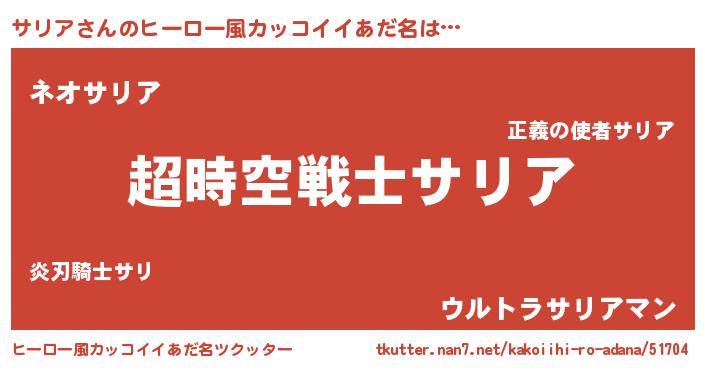 | 女子向けラノベタイトル風あだ名 | 『サリアなんてお断りですっ。』 |
