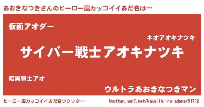 | 男性向けラノベタイトル風あだ名 | 『Re:あおきなつきから始める異世界生活』 |