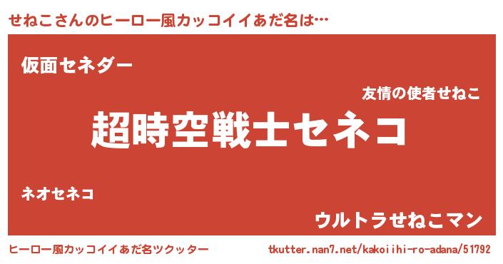 | 女子向けラノベタイトル風あだ名 | 『せねこなんてお断りですっ。』 |