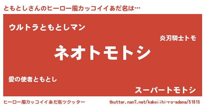 | 胡散臭い通販商品みたいなあだ名 | 『来世でも幸せになれる水素水…その名も「ともとし」』 |