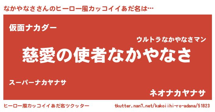 | 男性向けラノベタイトル風あだ名 | 『なかやなさ~年齢イコール彼女いない歴の魔法使い~』 |