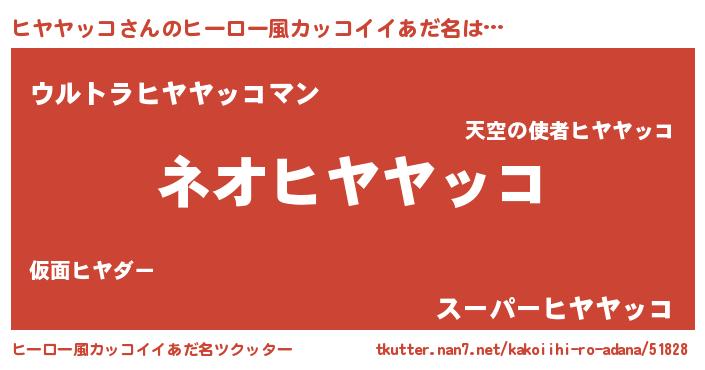 | 胡散臭い通販商品みたいなあだ名 | 『絶対に幸福をもたらす水素水…その名も「ヒヤヤッコ」』 |