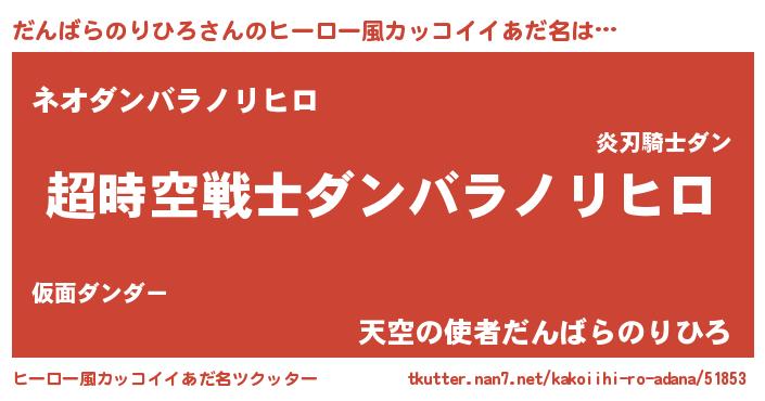 | 男性向けラノベタイトル風あだ名 | 『魔法科高校のだんばらのりひろ』 |